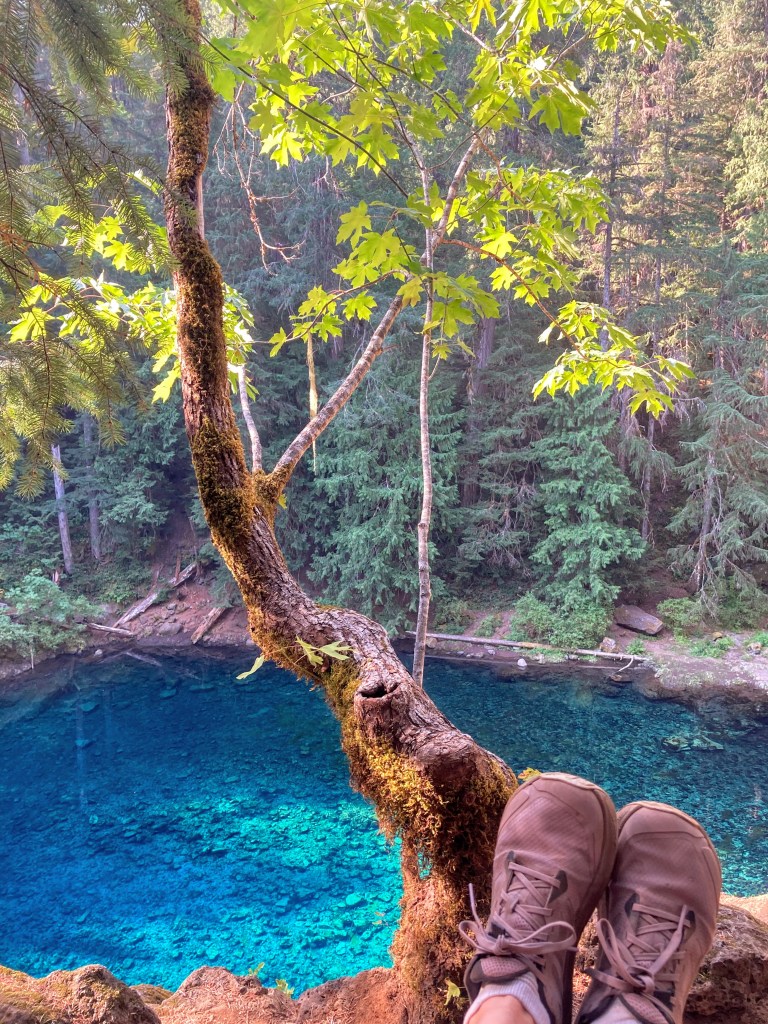 This photo was not generated by AI. It hasn't been altered. Last summer my husband, some friends, and I hiked to this lovely blue pool in Oregon. Those are my purple shoes. Seeing this felt like the miracle, like a new idea feels when it comes from the heart. Keep seeking, my friends.